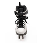 When trying on the skates the toes shouldn't be pressed against the front of the skate and should lay flat. Toes can touch slightly the front of the skates, without pressure point.