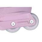 When trying on the skates the toes shouldn't be pressed against the front of the skate and should lay flat. Toes can touch slightly the front of the skates, without pressure point.
