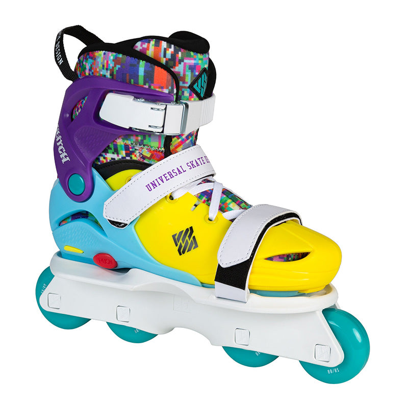 Meet the USD Glitch: a vibrant, feature-packed inline skate designed for kids' aggressive skating, offering speed, durability, and precision for aspiring young skaters.