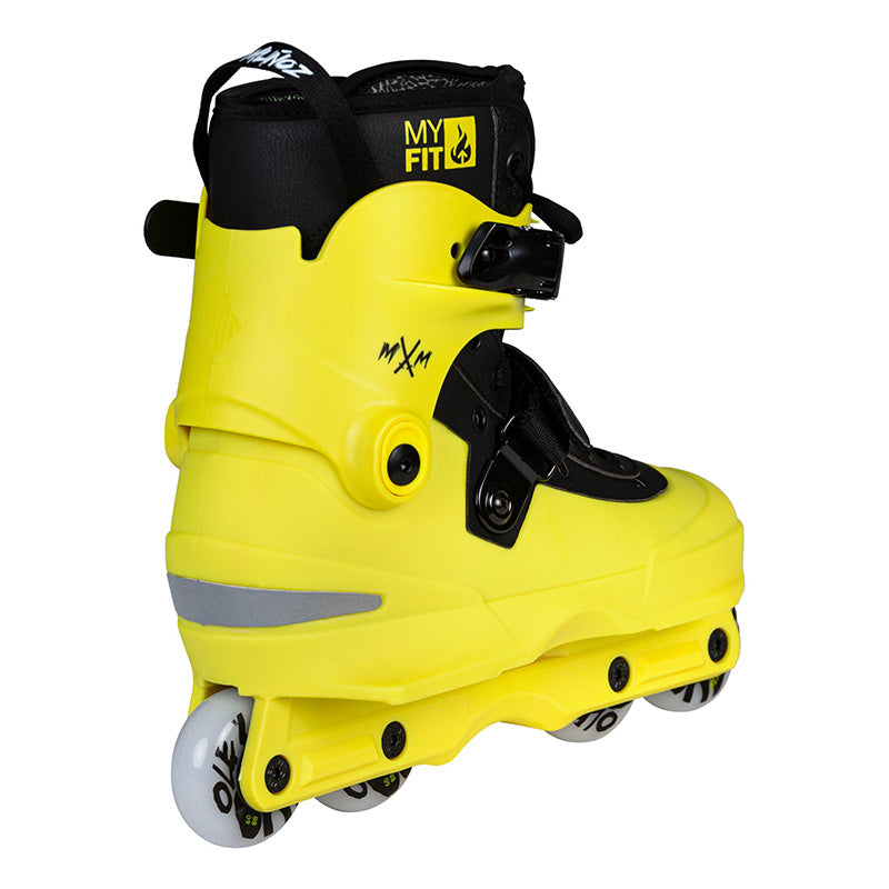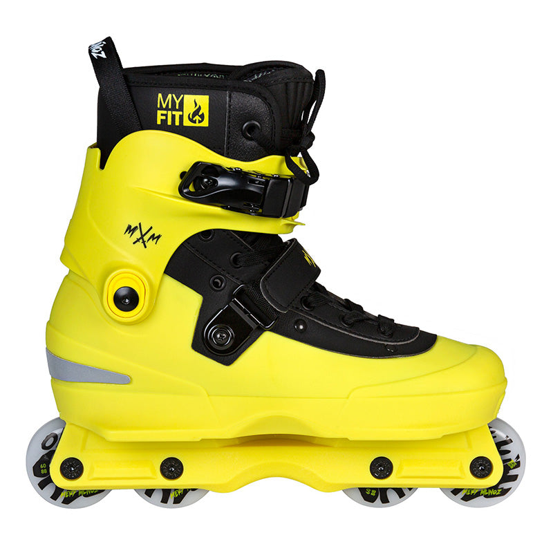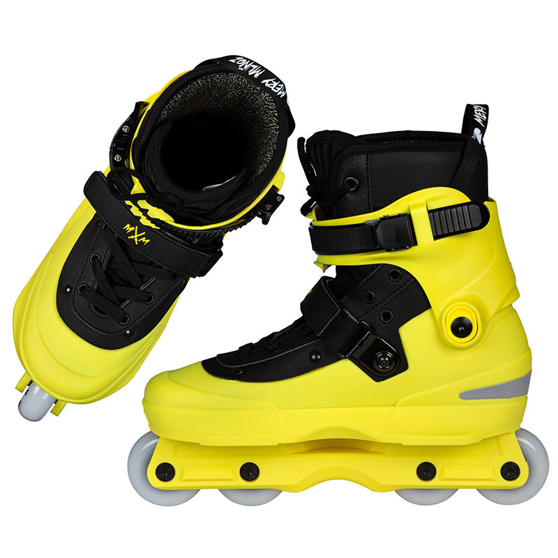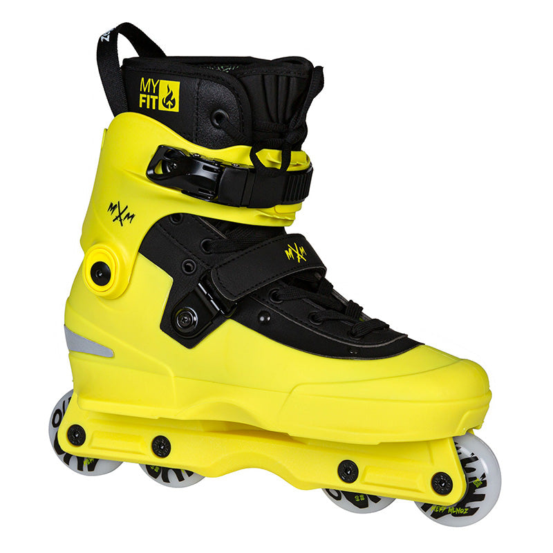 USD is proud to release the AEON Mery Muñoz II Pro 60. Based on the legendary AEON collection of aggressive skates, the skate has been upgraded to Mery’s exact specifications. With a custom yellow/black colorway, durable aluminum buckle, 45-degree velcro strap, and Mery’s 2nd Skin MYFIT liner, there is a lot to like about this pro model aggressive skate.