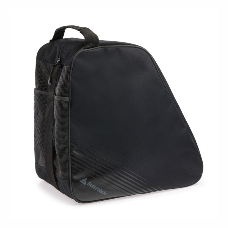 Skate Bag is ideal for transporting or storing skates and gear. The YKK zippered center panel allows easy access to the main storage area. A rear panel features two vented sections and an internal pocket holds smaller items. The shoulder strap and reinforced tote handle offer two options for transport and the bag base includes peg feet for stability. Size (cm): 42x20x38