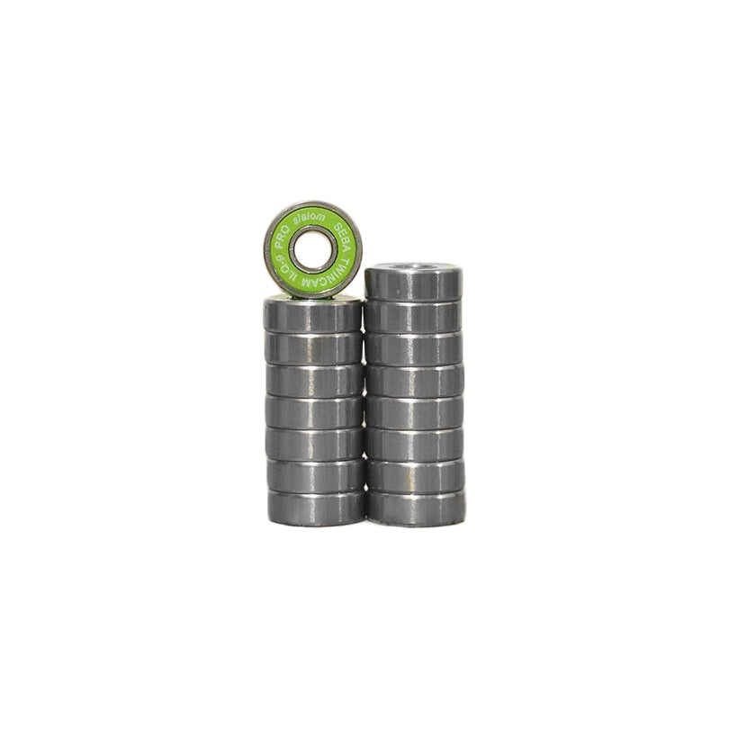 Twincam ILQ-9 Pro bearings elevate skating speed with cutting edge components. 6-ball bearing (instead of 7) design improves speed, holds larger loads and creates less void for a smoother spin. SCRS (S-Channel Rubber Shield) prevents contaminates from entering the bearings. The TK racing gel (Made in the USA) lubricates the bearings for an extremely fast ride.