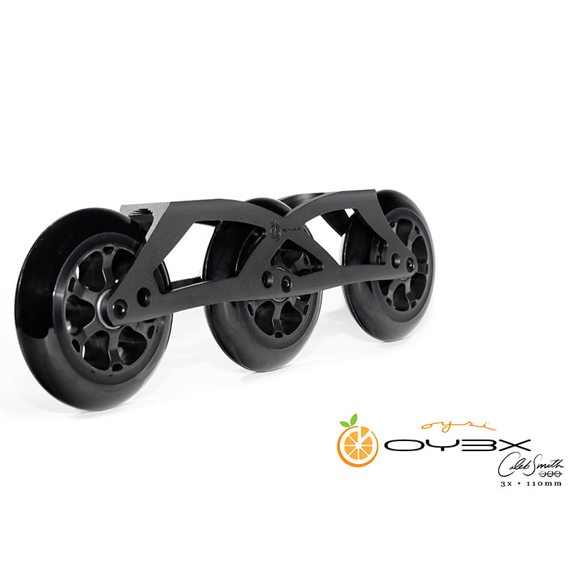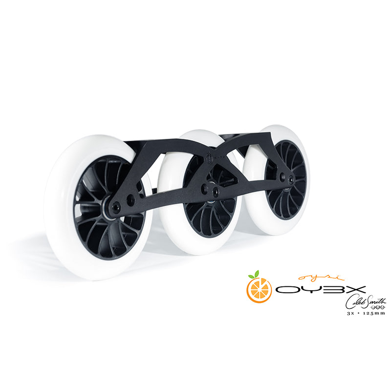 OY3X chassis makes use of the dished hubs found on 125mm, 110mm, and 100mm wheels to accommodate different wheel sizes without the use of specialized sidewall spacers.