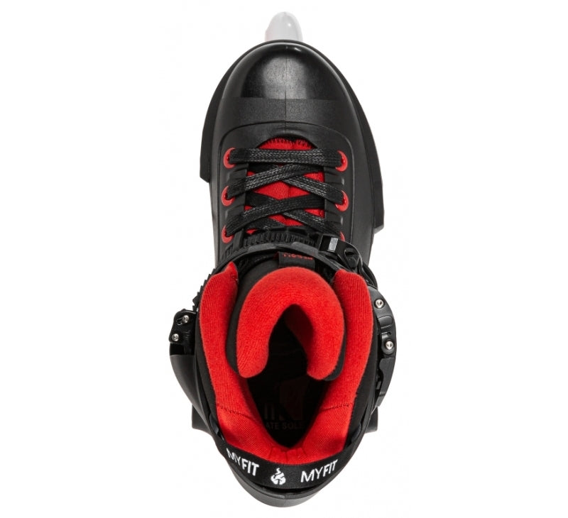 The POWERSLIDE NEXT Black Red 80 is a formidable urban inline skate, fast, durable, and customizable, this impressive skate sets a new standard for urban skating. It all starts with the renowned NEXT hardboot that’s not only precise, but also tough as nails and ready for intense urban inline skating. Skate fast, turn quickly, jump big gaps, the capable NEXT Black Red 80 can do it all with style. The hardboot is complemented with a supportive cuff that can be customized to match your individual skating needs. You can easily adjust the height and forward flex of the cuff, giving you the perfect fit every time. Of course, comfort is key and the NEXT Black Red 80 comes through big time with a heat-moldable MYFIT Recall Dual Fit liner. The POWERSLIDE NEXT Black Red 80 comes with the famous TRINITY 3-point mounting system that gives skaters a low center of gravity that gives you excellent stability and control. The TRINITY system also allows you to adjust the position of the frame to amplify your skating performance.