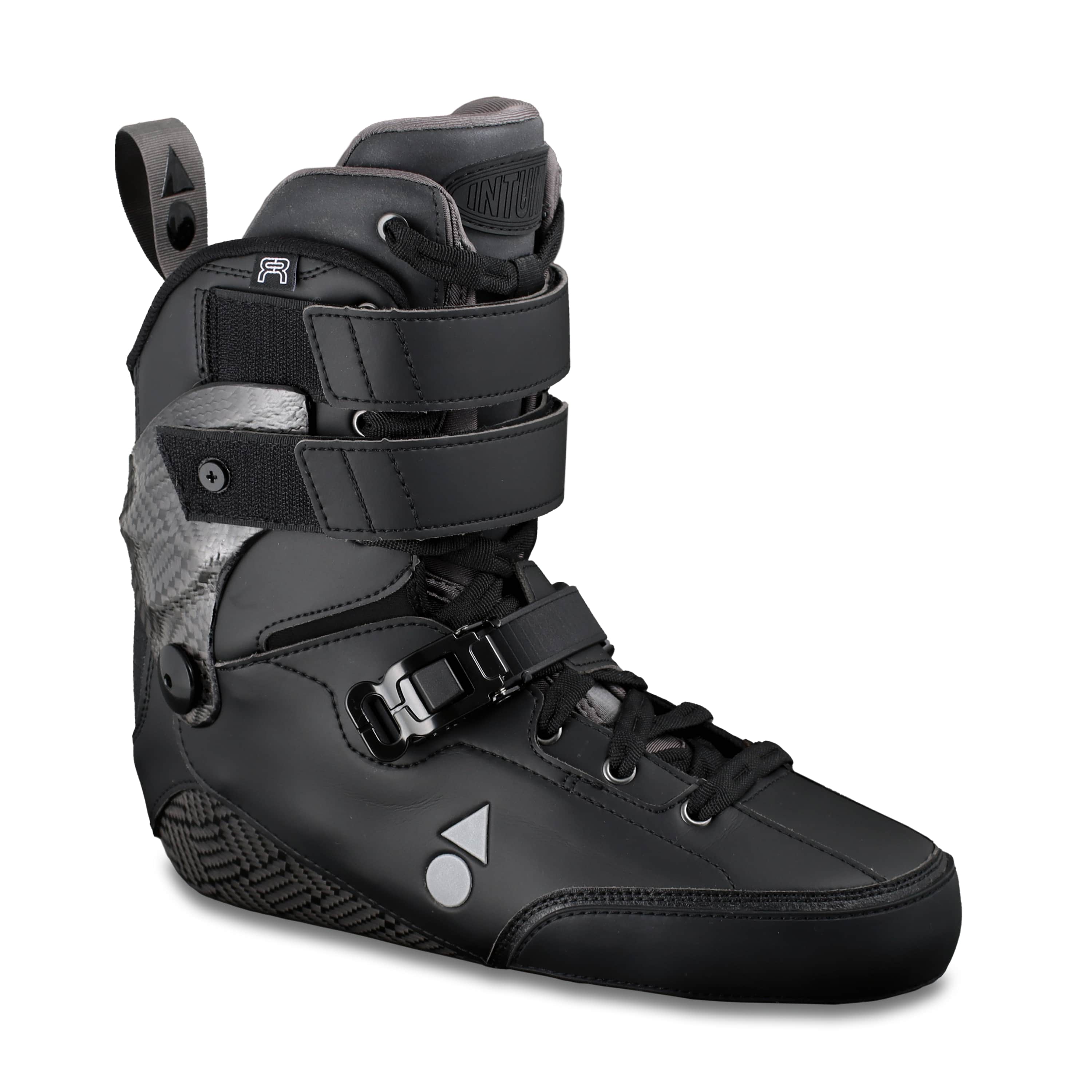 When trying on the skates the toes shouldn't be pressed against the front of the skate and should lay flat. Toes can touch slightly the front of the skates, without pressure point.