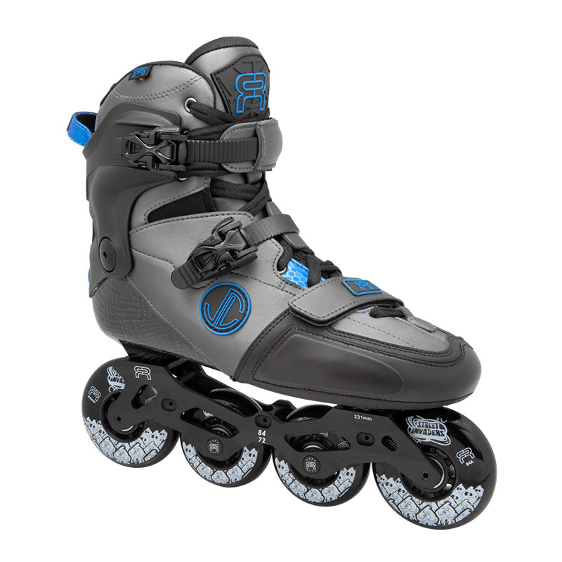 The SL Seven stands out from the other FReestyle oriented models with a less rigid cuff for riders looking for more freedom on the ankle movements, making it a more versatile tool for any type of skating. The 84/72 Freestyle frames are rockerable and are usable as a stable flat frame for smooth cruising or a rockered frame for easy slalom skating. The bigger 84mm wheels on the toe and heel make spins and one wheel tricks much easier to balance.