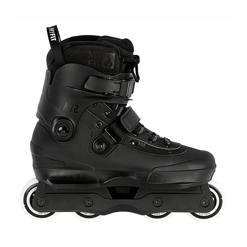 USD Aeon’s are pushing aggressive skate design forward with experimental, one piece frames and shells. By eliminating the UFS mounting system and simplifying the body of the skate, USD reduced the number of metal parts which has ultimately increased durability and decreased the weight of the skate significantly. Less hardware under the foot allows the boot to sit lower to the wheels, increasing control and stability.
