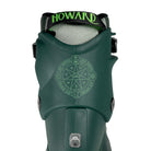 When trying on the skates the toes shouldn't be pressed against the front of the skate and should lay flat. Toes can touch slightly the front of the skates, without pressure point.