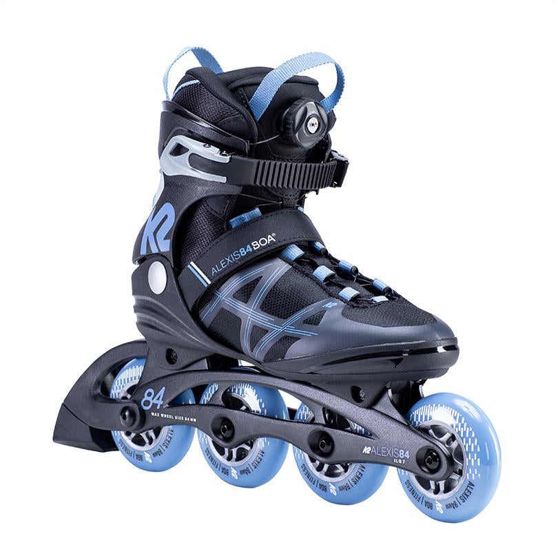 The K2 Alexis is a light, breathable, and comfortable skate. With K2's softboot design and the Boa lacing system, the Alexis is an incredibly easy skate to slip on and tighten up quickly! The longer frames provide more stability making the Alexis a great skate for outdoor trail skating, but the skate is still maneuverable enough to be fun to use in more restricted areas like an indoor rink.