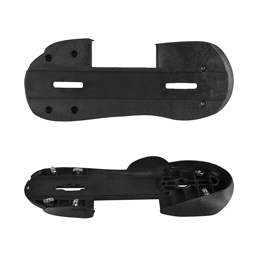 Remz one-piece soul splates take place of the old 3-piece Remedyz soul plates.  These are slightly larger than the old ones giving you a larger soul and negative grind space. The front of the soul plate wraps around the toe a bit better to protect your boots as well.  Being one-piece, the new soulplate also helps reduce the boot from flexing or twisting to give better stability for you and your frames. Will not work for True Balance frames on newer Remz skates.