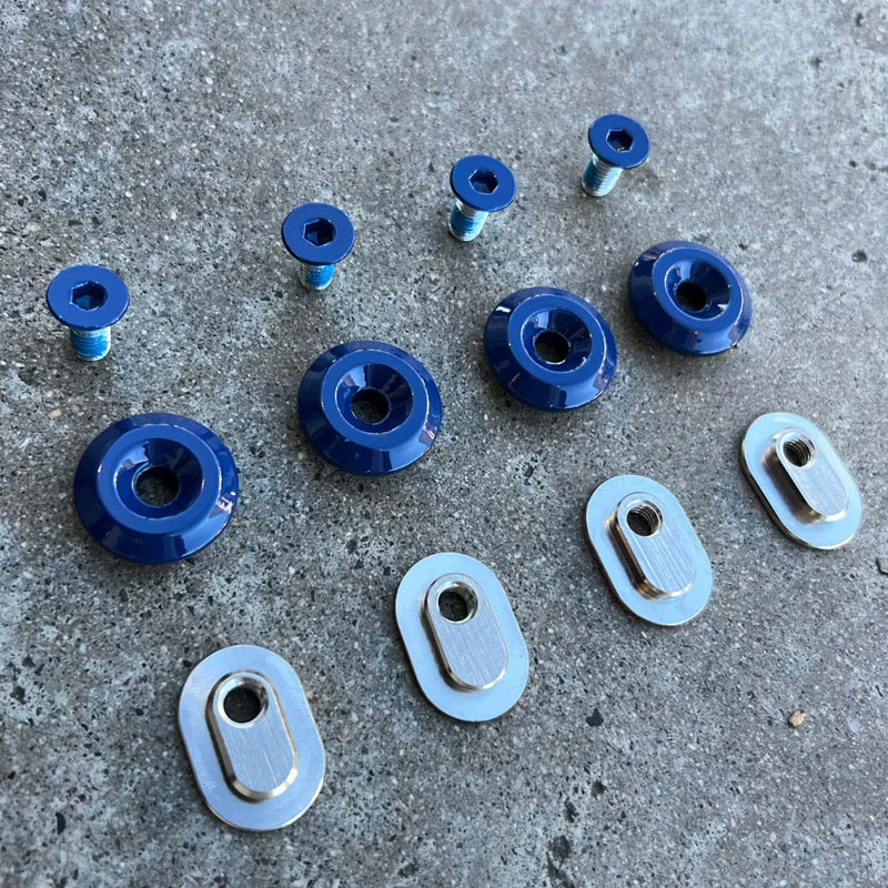 Two sets of replacement 909 cuff bolts, washers and adjustable height receiver. One product is enough for one pair of skates