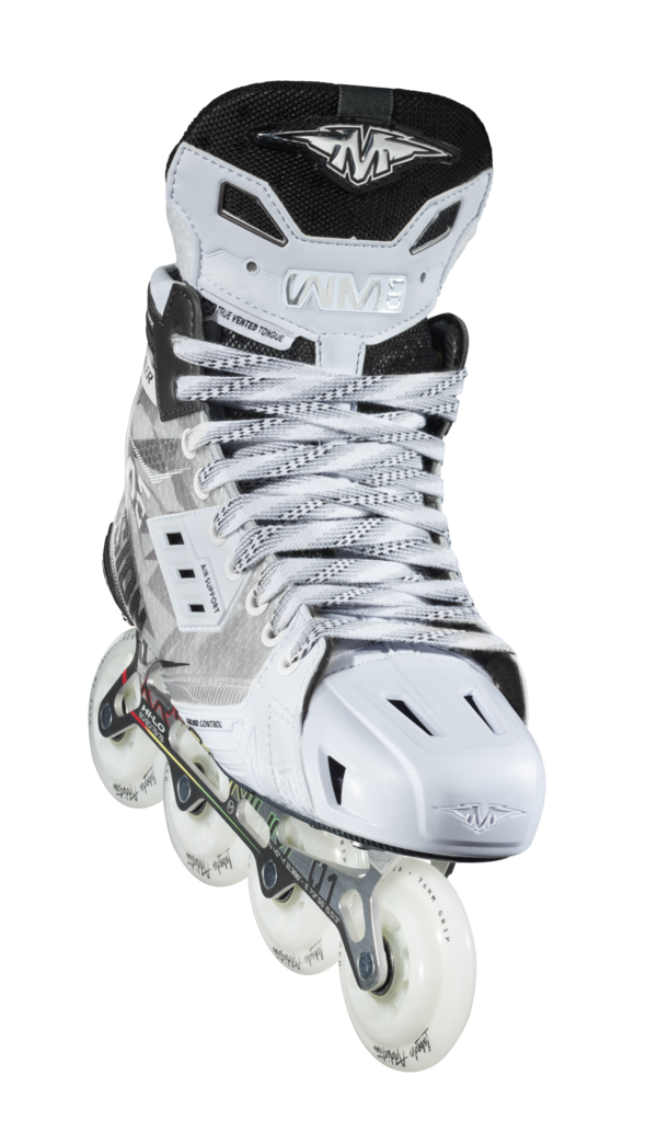 The top skate in the War Machine lineup, the WM01, has eye catching looks and fully arms you to battle for a win with its elite specs. It’s built with a stiff, durable, 3D lasted CURV composite quarter that includes a comfort edge up top, vents in the middle and an abrasion guard toward the front. The tongue is also vented, as is the new, sleek asymmetrical toe cap.