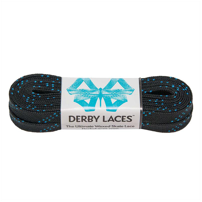 Derby Laces Waxed Skate Laces Black with Blue Tracer