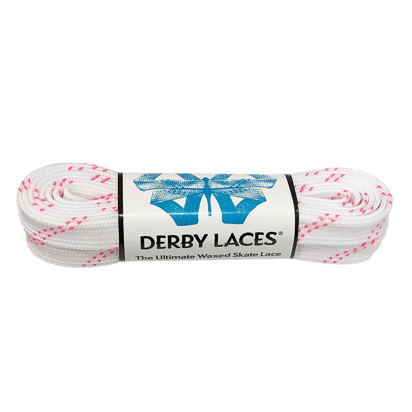 Derby Laces Waxed Skate Laces White with Pink Tracer