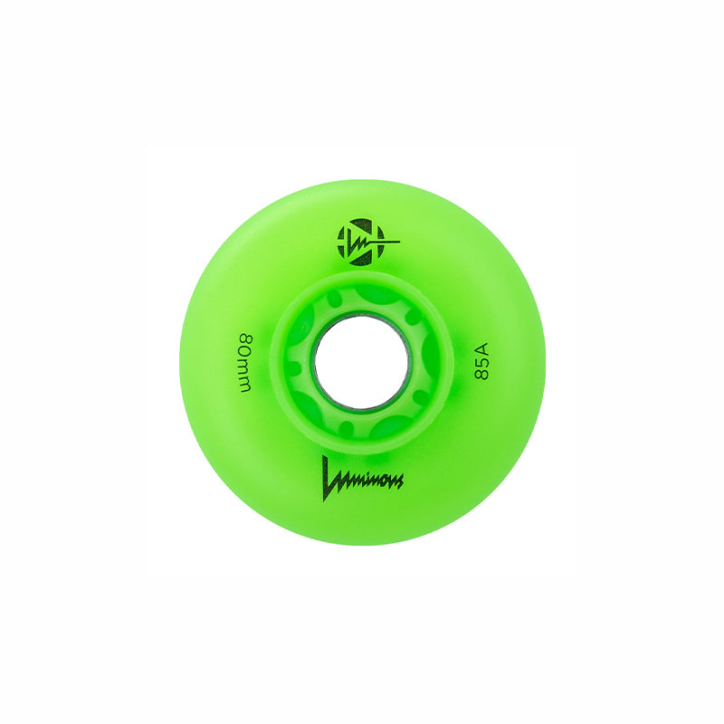 Luminous wheels include 8mm magnetic spacers, if your skates use a 6mm axle, an adapter may be necessary. Please contact us if you are unsure what diameter axle your skates use. 6mm adapters are available HERE.