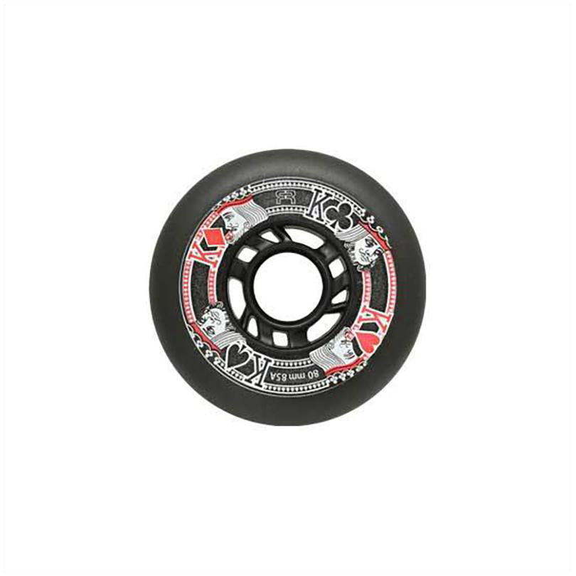 FR Street King wheels are a high quality and affordable general purpose inline skate wheels. With 85a hardness polyurethane, Street King wheels are hard enough to be durable outside on rough surfaces, but soft enough to grip well on smooth indoor skating surfaces.