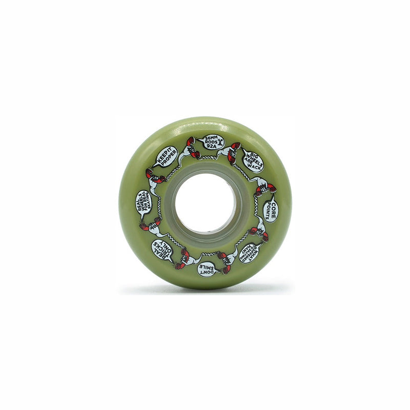 The 56/92 Rods are THE most core wheel in our line. Inspired by the first generation Kryptonics and Senate wheels designed for "aggressive inline skating" in the 90s. The low-riding Rods are meant for real street skating* and real street tricks. With their wide profile and harder urethane Rods can be used anti or flat on a variety of street skating frames for grinding, wheel sliding, toe/heel rolling, pivoting, swivelling and jumping. Extra core points will be rewarded if you don't smile while skating these wheels.