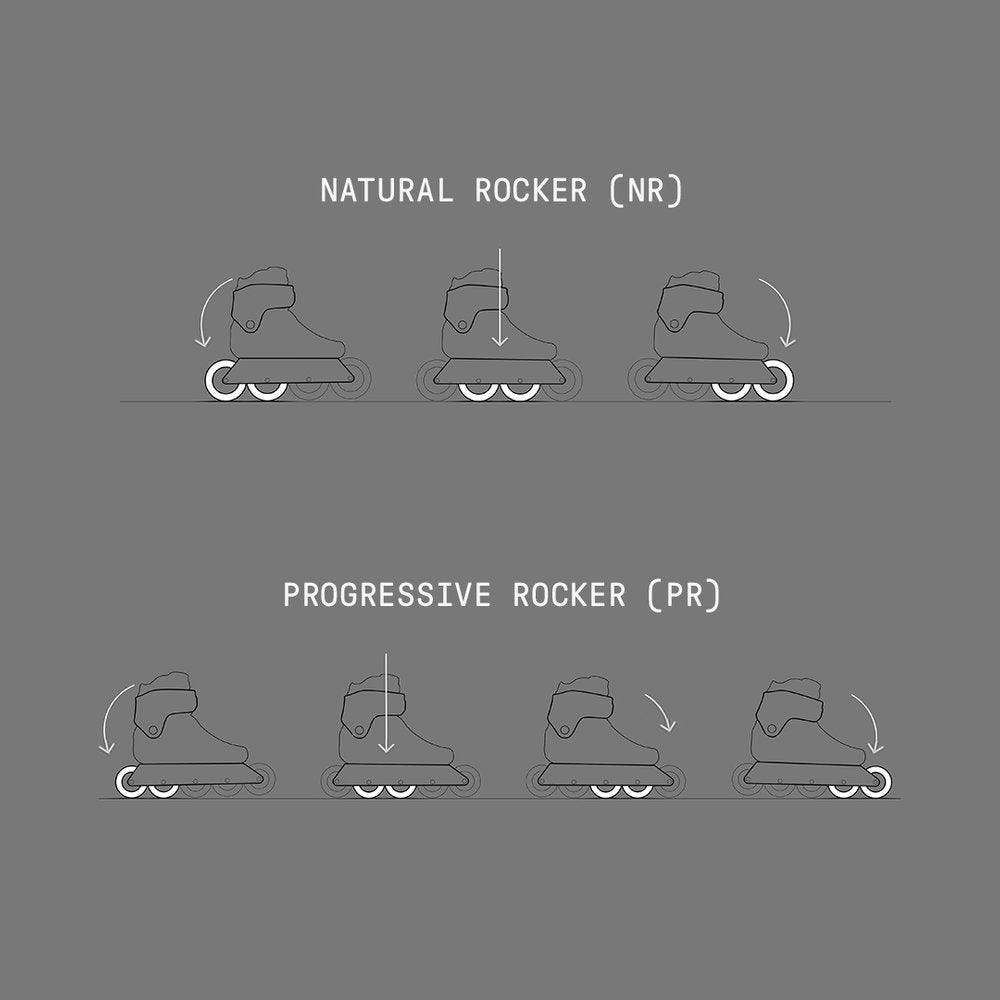 The PR (Progressive Rocker) frames are an evolution of our NR (Natural Rocker) frames. Using 5 smaller wheels, the PR frames are designed for a more artistic skating style and skill development on smooth surfaces. Whereas the NR frames (4 larger wheels) work better for versatile skating on all surfaces.